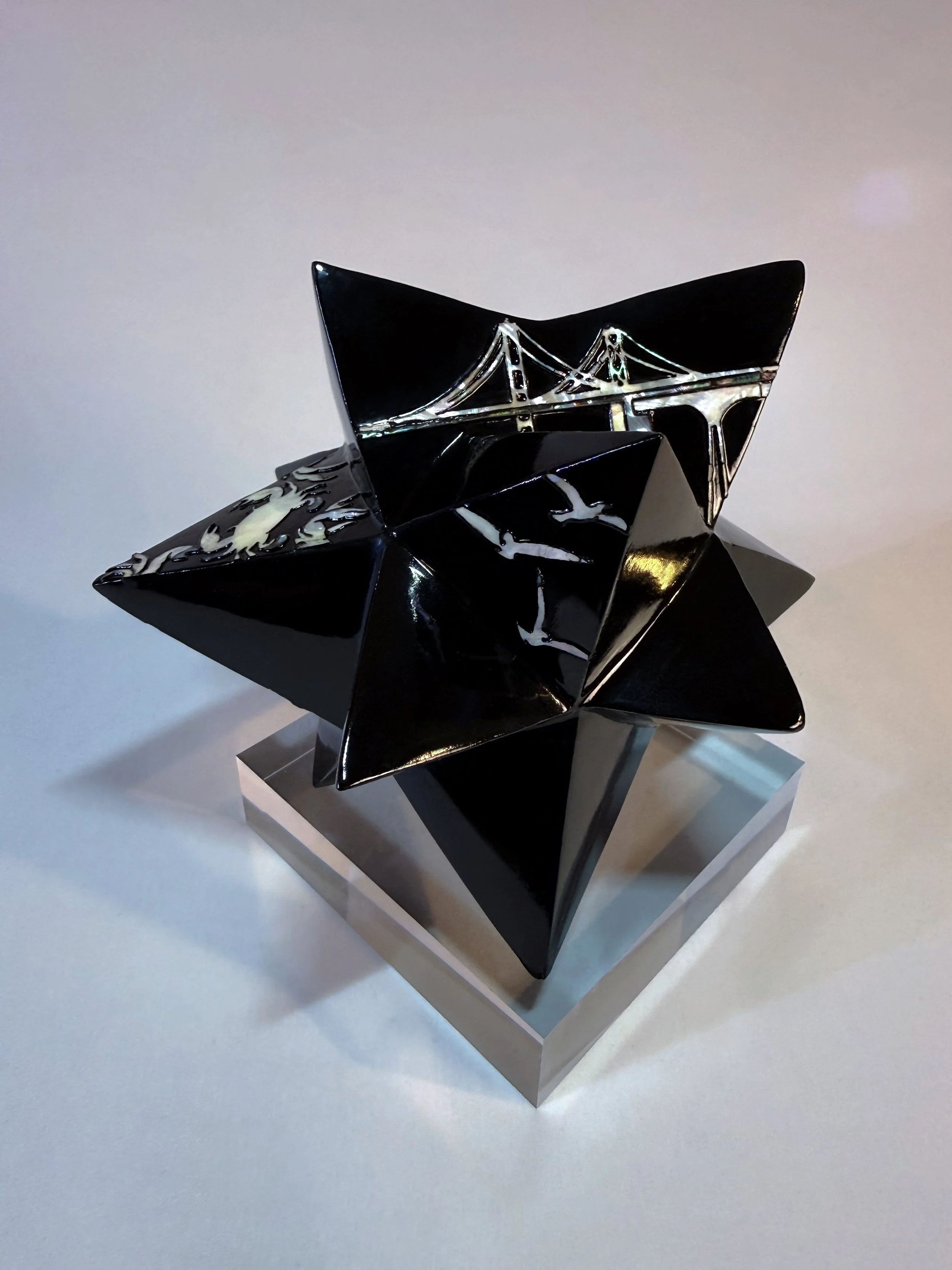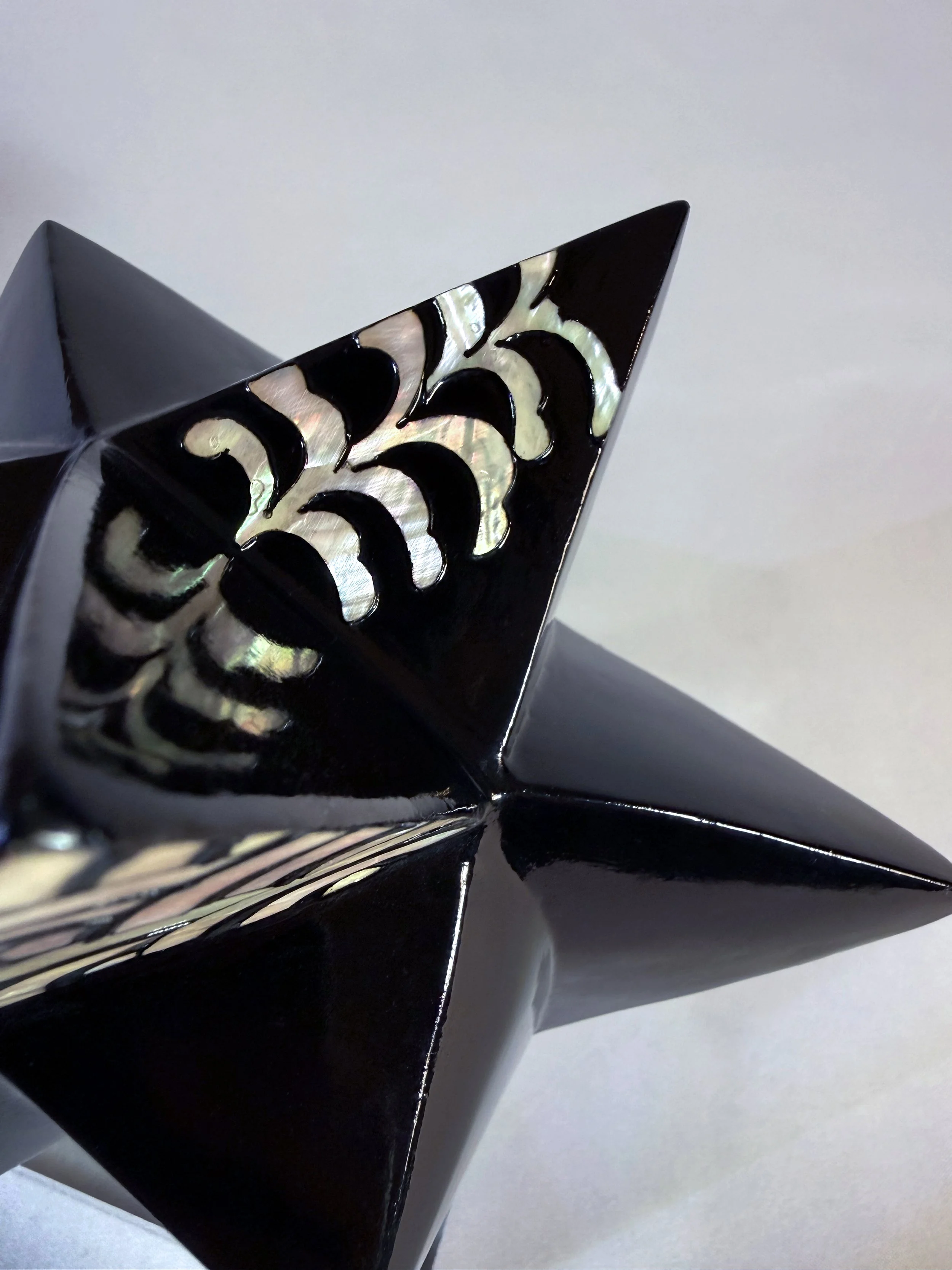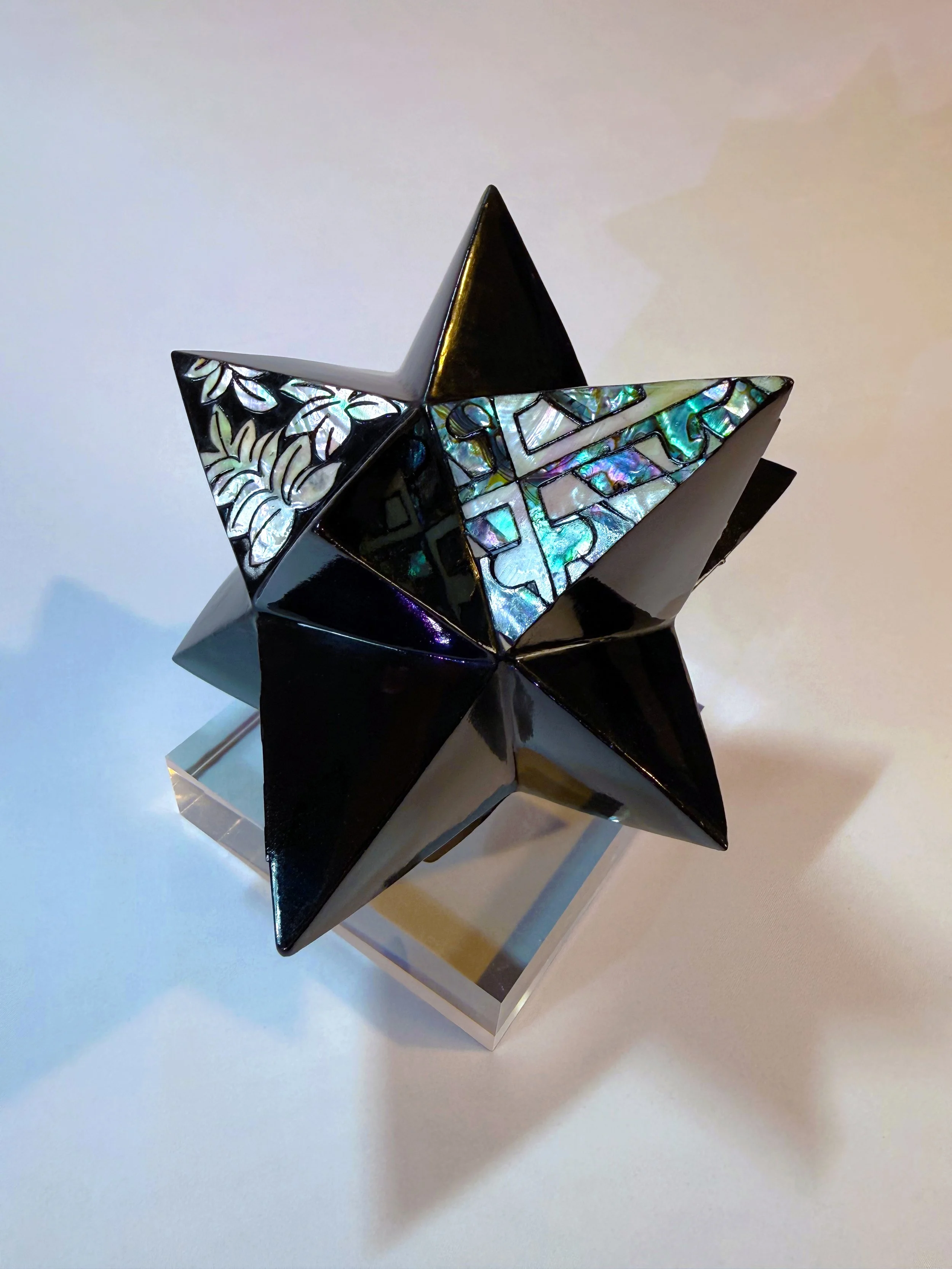 PROCESS DURATION: 8 MONTHS LACQUER/CLAY LAYERS: 79 LAYERS PEARL TYPE: NATURAL ABALONE & PAUA ABALONE SIZE: 8” X 7” X 8”